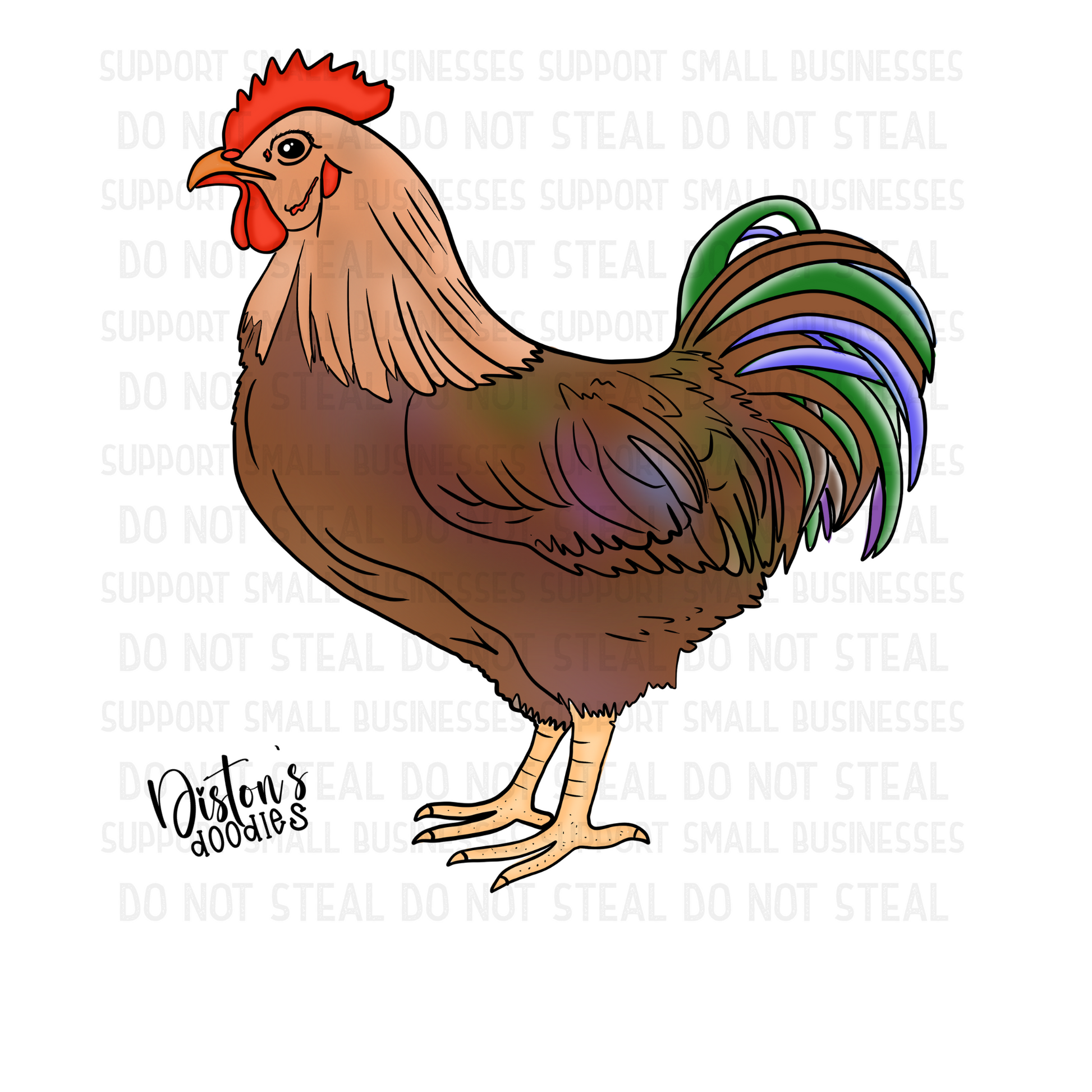 Just a cute lone rooster clipart. It's fitting since we also have just one lonely roo lol. Remember with clipart only (not completed designs) you are allowed to change the colors, and make edits to work it into your own design as you need to. I just ask you don't give, share, resell. I'd love to see what you make with it! Don't forget to join our new Facebook group Diston's Doodles PNG, Clipart, & Seamless.