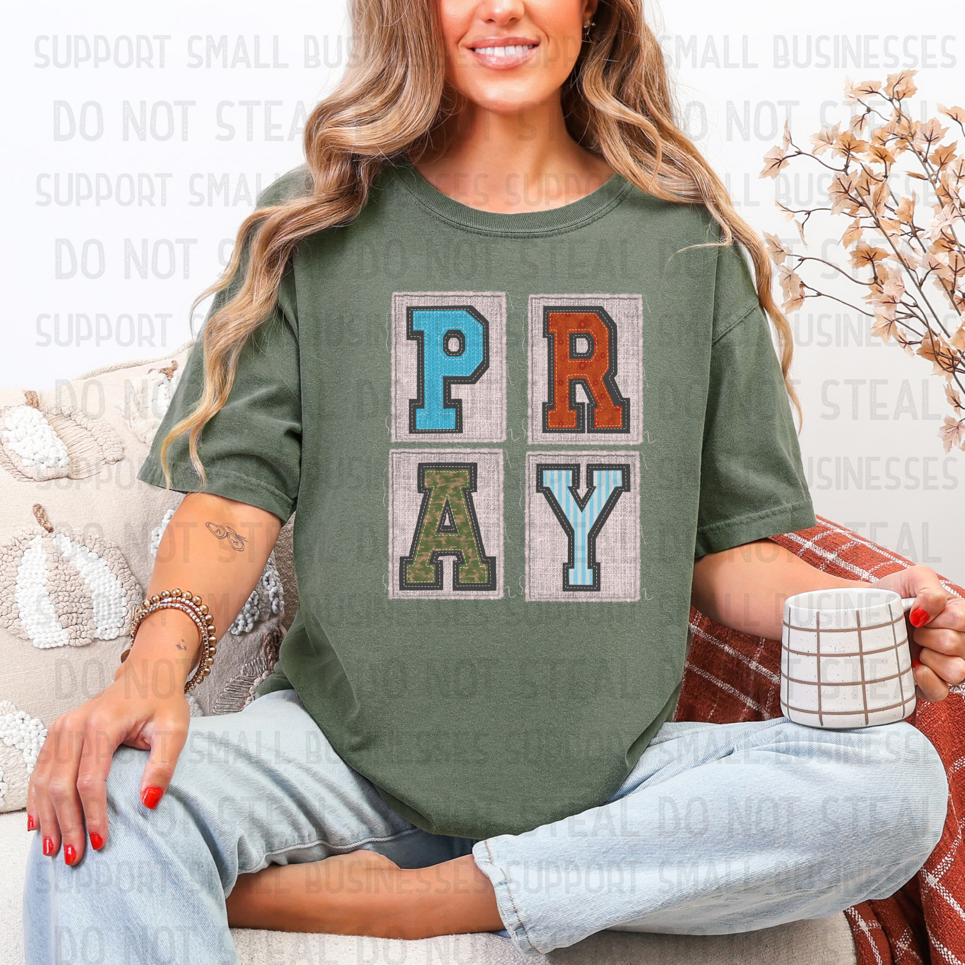 The new Pray Croquette Applique digital design is all about the little details, the "stings" hanging delicately from each hand drawn fabric piece gives it the extra touch of love — ready to use and perfect for small business owners, crafters, and boutique shops. Each file is carefully designed to make production easy and professional, whether you’re creating shirts, mugs, or seasonal products.