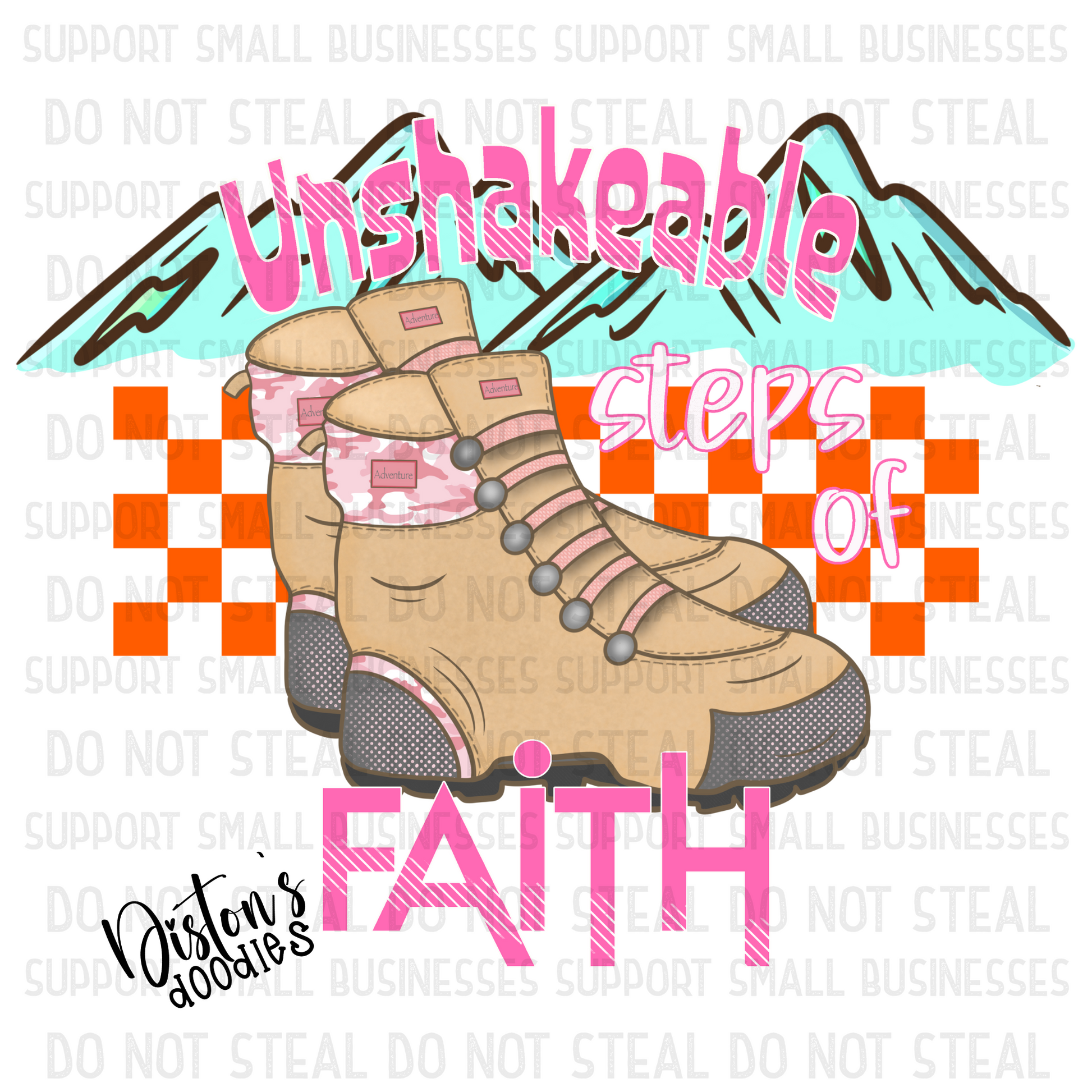 Take bold steps in faith with this empowering design! Featuring rugged hiking boots, majestic mountains, and the inspiring phrase “Unshakeable Steps of Faith,” this high-quality PNG is perfect for t-shirts, mugs, tote bags, journals, and more.
